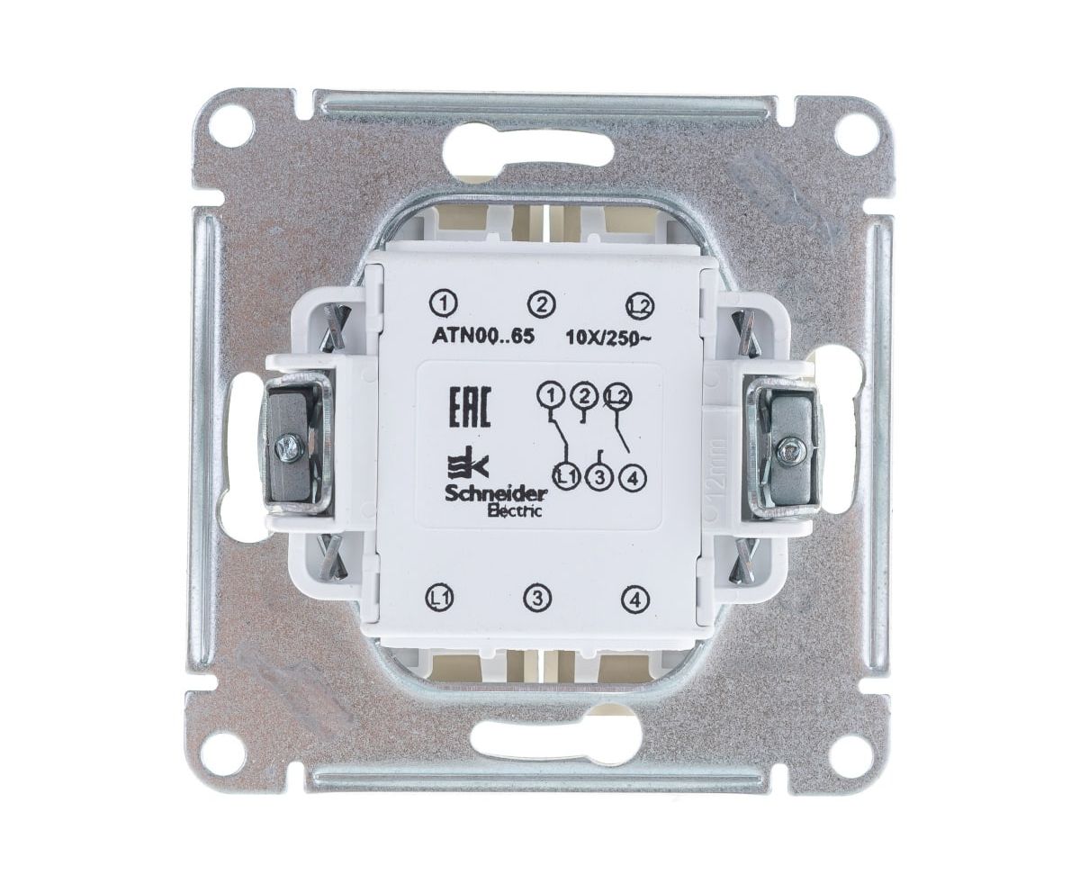 Переключатель Schneider Electric AtlasDesign ATN000365 2-клавишный сх.6, 10АХ Алюминий