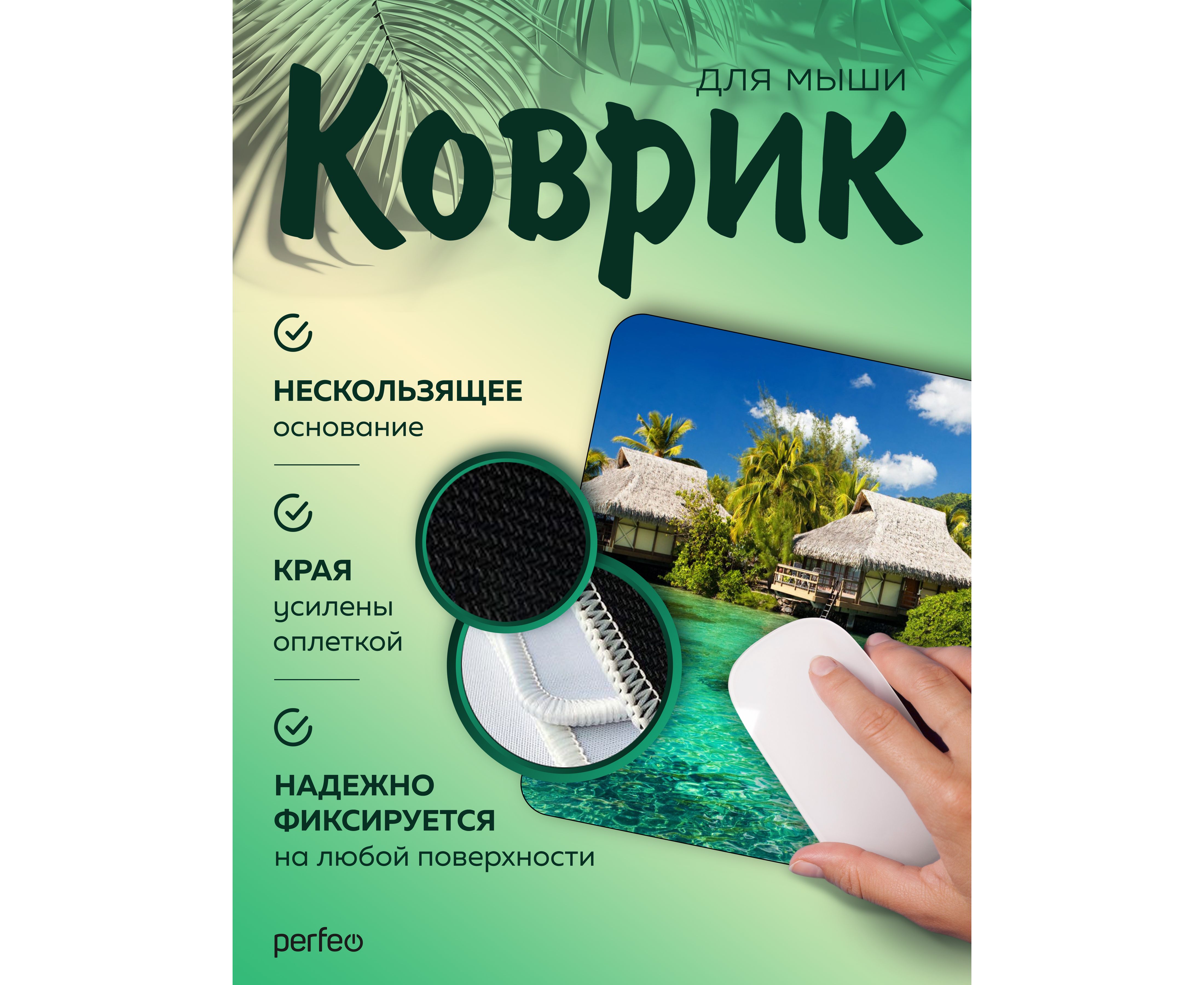 Компьютерный коврик для мыши из серии Пляж обладает гладкой тканевой поверхностью, которая обеспечивает точность и плавность движения - мышь скользит быстро и четко. Оверлочная строчка по краю увеличивает износостойкость и срок службы. Не скользящая резиновая основа надёжно фиксирует коврик на столе. Небольшой вес и хорошая гибкость позволят Вам взять коврик для мыши куда угодно для комфортного пользования ноутбуком. Качественный принт будет вас долгое время радовать. Подходит для оптических и лазерных мышей с любой чувствительностью и любым типом сенсора.