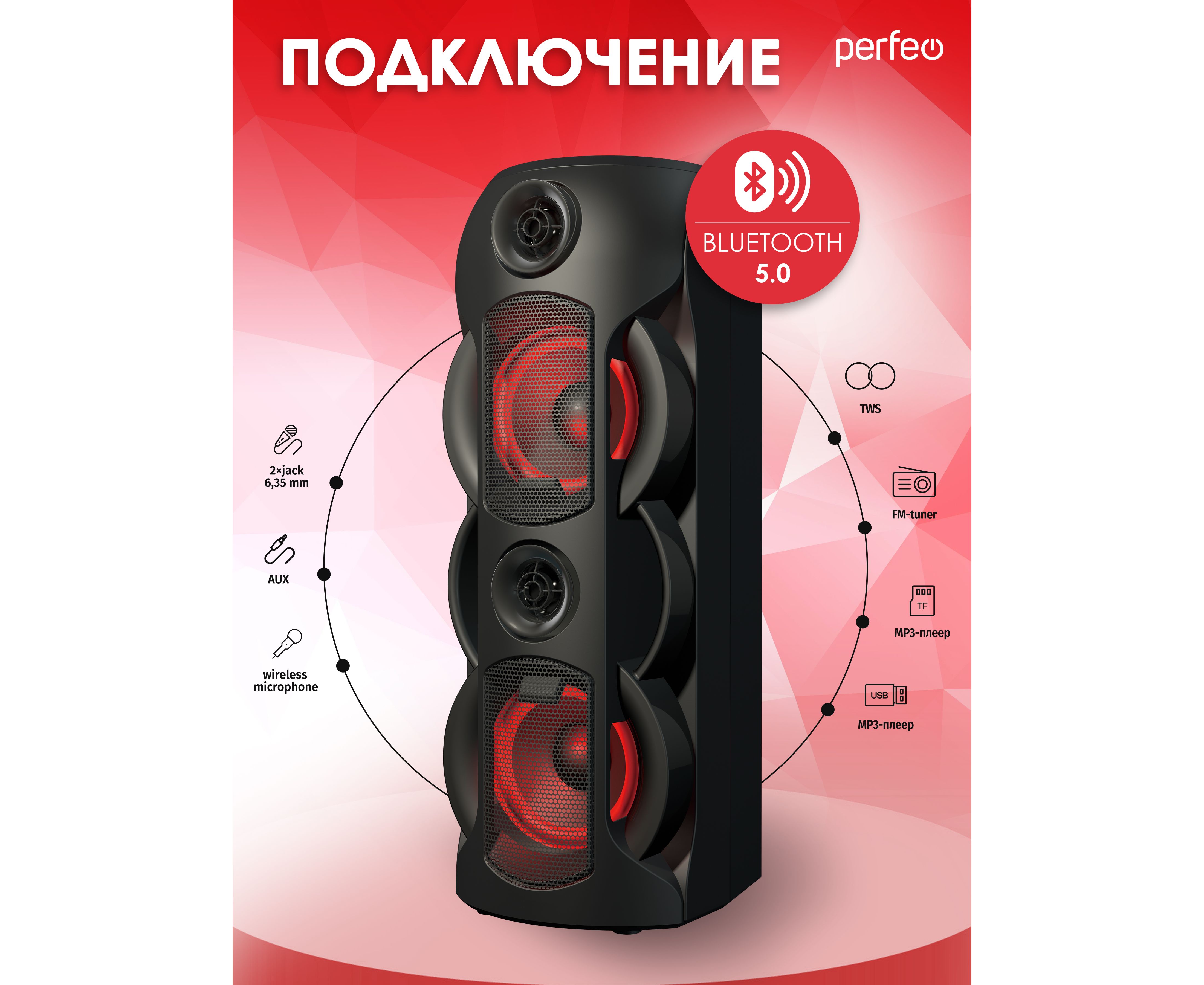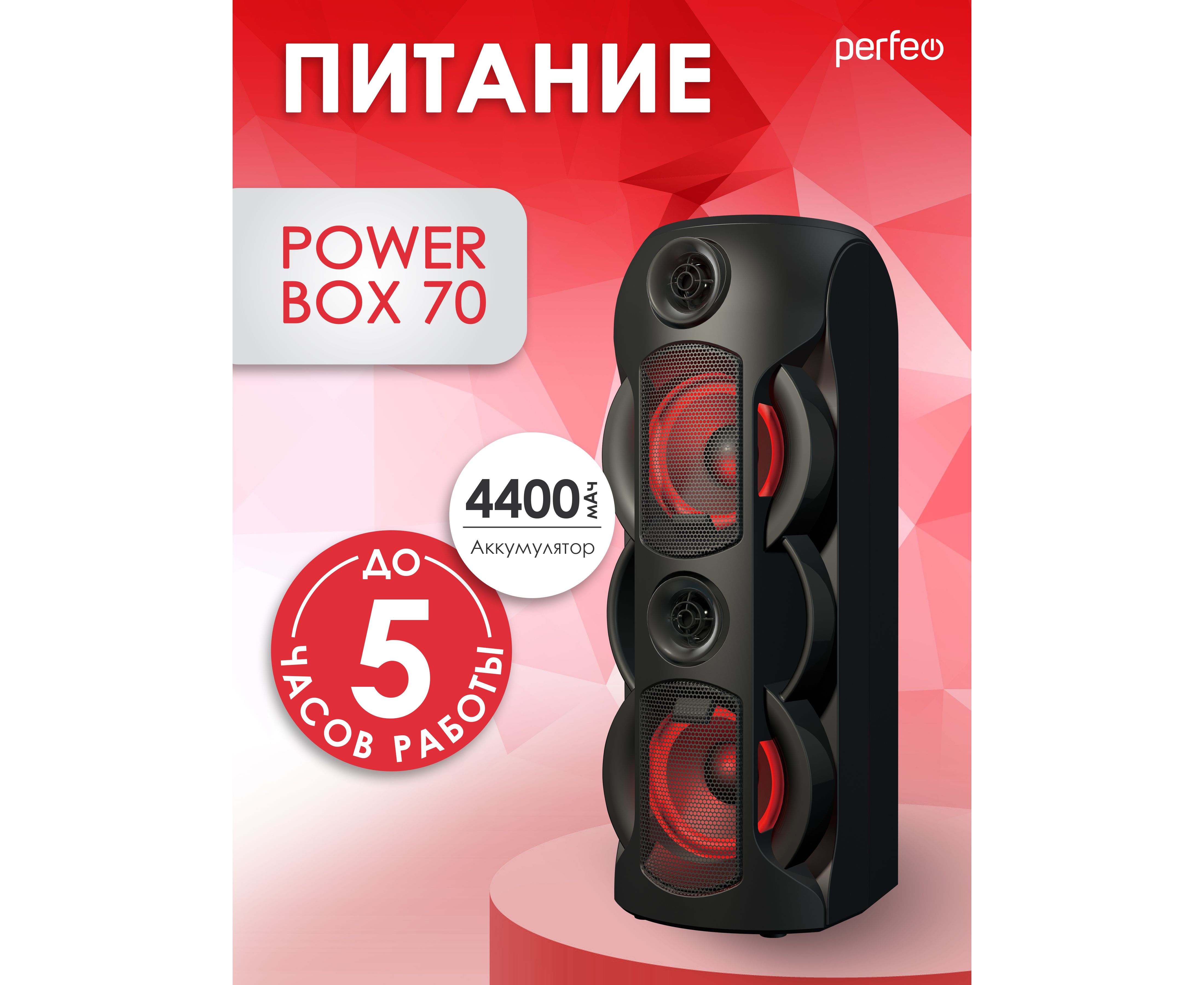 PERFEO PF_B4986 POWER BOX 70 - это современная акустическая система, которая превосходно подойдет для создания качественного звука в вашем доме. С помощью Bluetooth 5.0 вы сможете легко подключить свои устройства и наслаждаться музыкой без проводов.