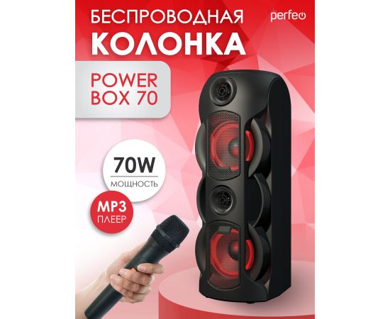 Портативная акустическая система Perfeo ”Power Box 70” EQ,USB, microSD, AUX, FM, MIC, TWS черная