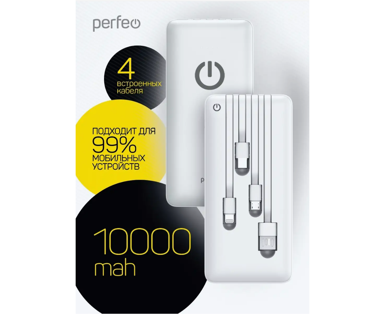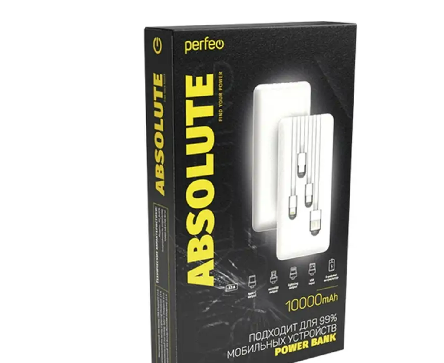 Пауэрбанк Perfeo ABSOLUTE 10000mah In Micro usb,USB /Out USB,Micro usb,Type-C,Lightning, 2.1А/ Белый, (Арт. PF_B4879)