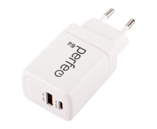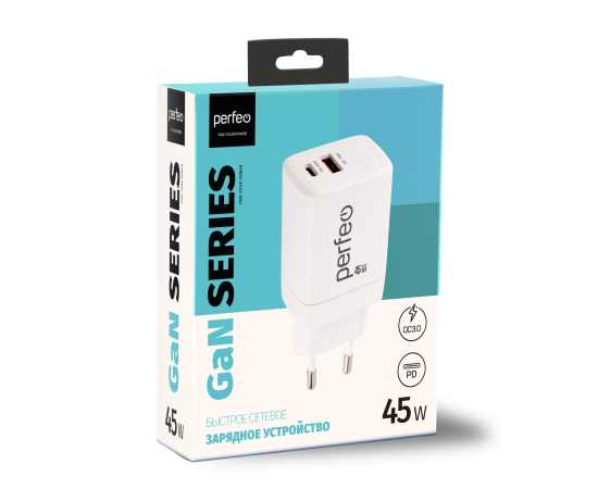 Сетевое зарядное устройство PERFEO с двумя разъемами USB-A+TYPE-C, GaN, 45W, белый (I4663)