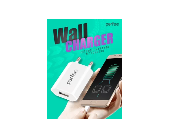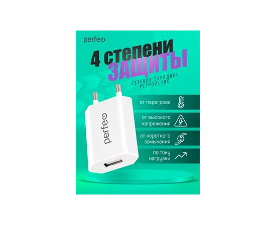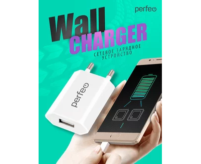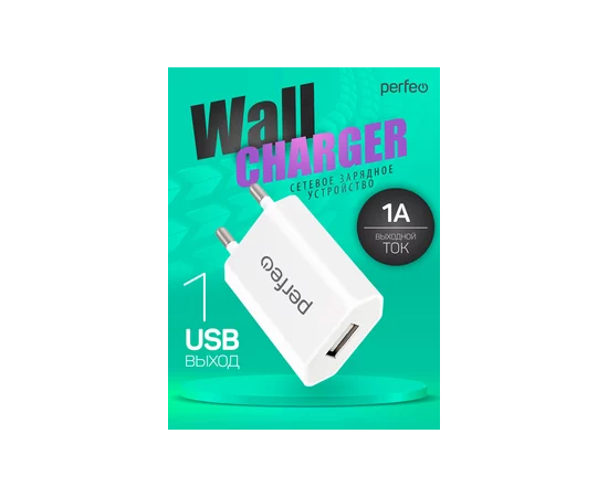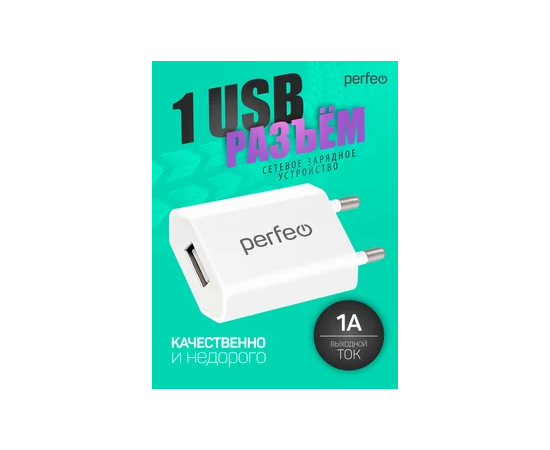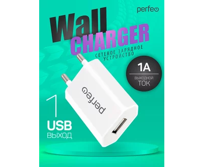 Сетевое зарядное устройство PERFEO с разъемом USB, 1А, белый (I4605)