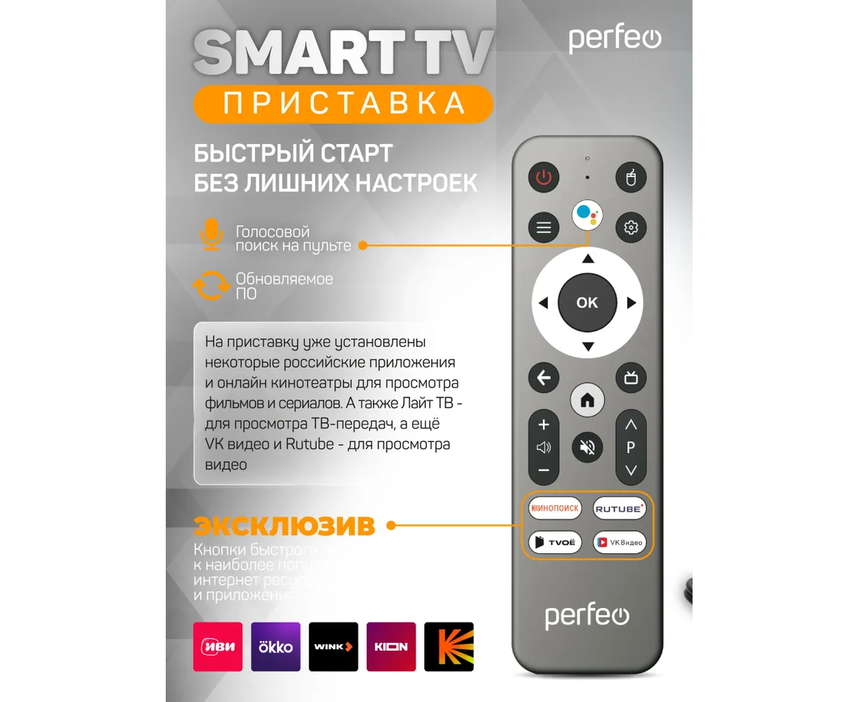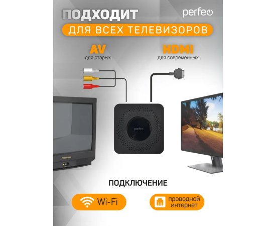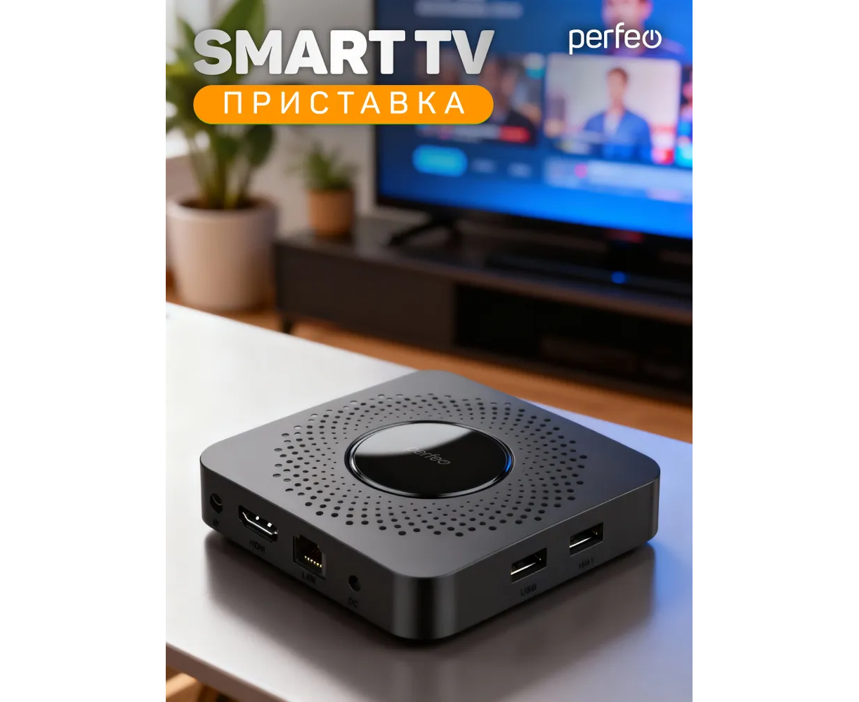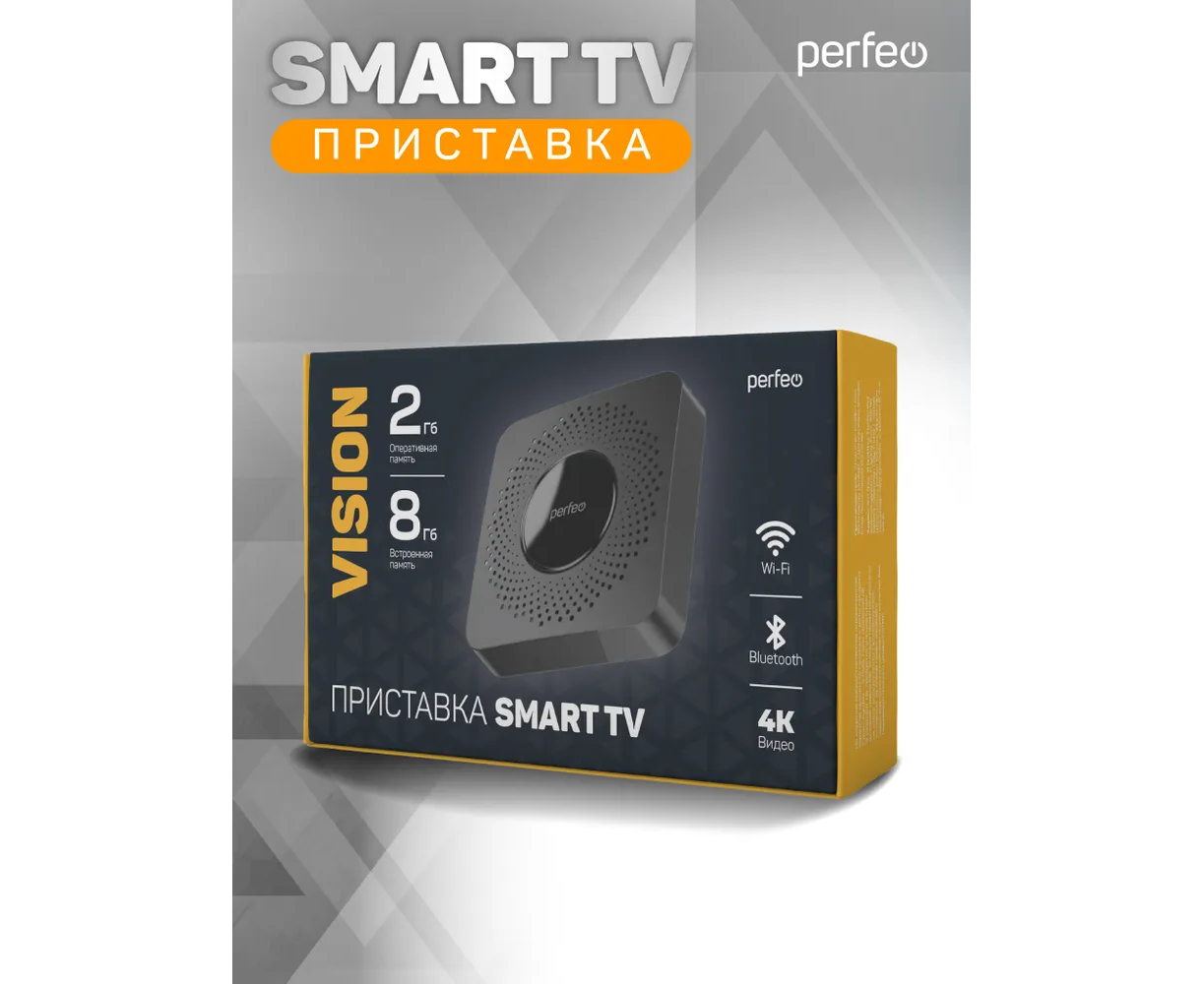 Приставка Perfeo SMART TV BOX "VISION 2/8", Allwinner H618, Android 12, 2Gb/8Gb, Пульт Bluetooth, (Арт. PF_A4559-C)