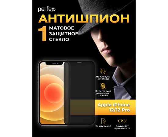 Perfeo защитное стекло Матовое Антишпион Apple iPhone 12/12 Pro (6.1") черный