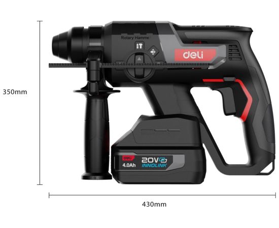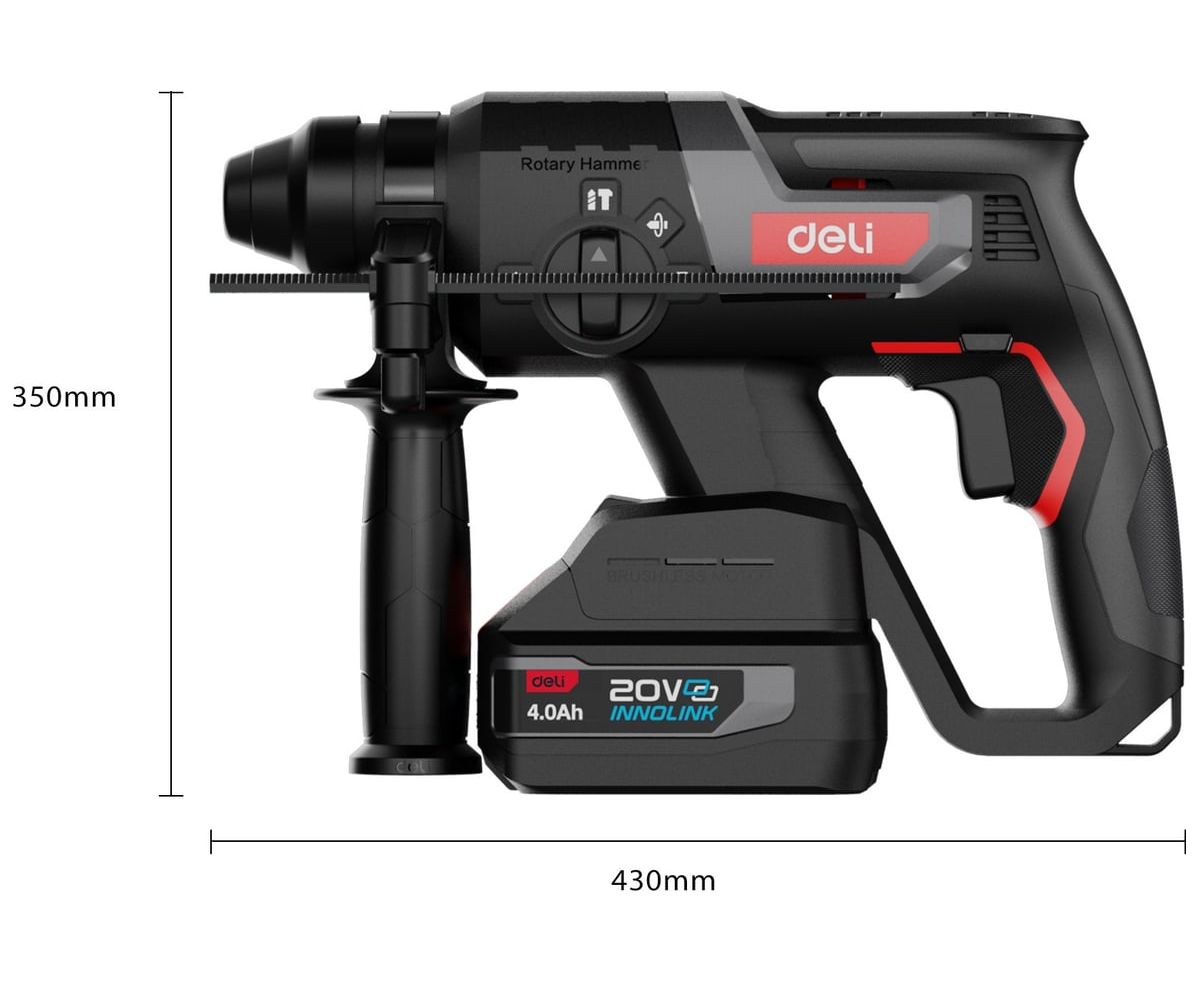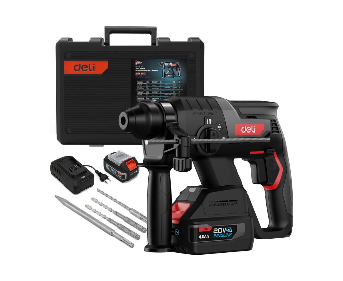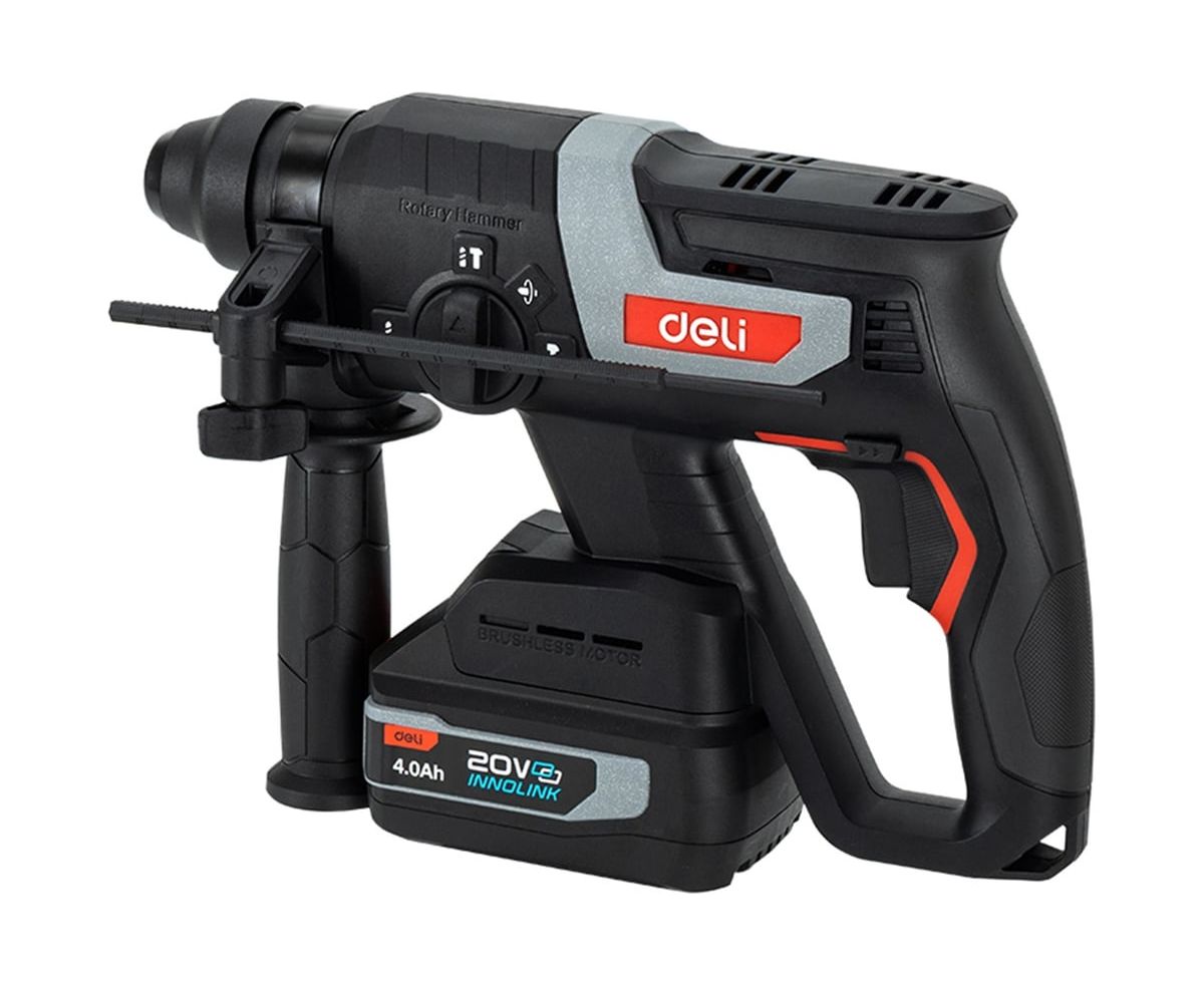 Deli DE-DC20-2D4 — профессиональный аккумуляторный перфоратор с инновационными технологиями.Бесщеточный двигатель в сочетании с технологией Ultra Motor обеспечивает мощность удара 2 Дж при частоте 4750 уд/мин, гарантируя высокую производительность в любых условиях.