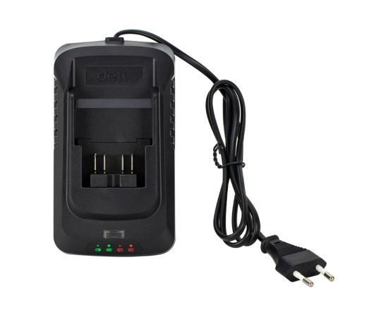 - Позволяет использовать одни аккумуляторы для всех инструментов Deli независимо от серии