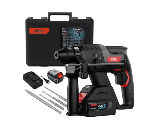 Перфоратор аккумуляторный Deli DE-DC20-2D4 с АКБ и ЗУ, 20V, SDS Plus, 2Дж, 4750уд/мин, 1350об/мин, кейс