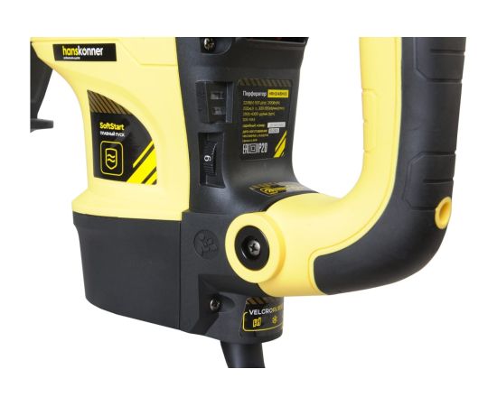 Hanskonner HRH2145MVE – универсальный и производительный перфоратор для тяжелых и интенсивных работ с типом патрона SDS Max. Модель оснащена мощным электродвигателем с дополнительным бронированием арамидной нитью ArmorProtect, защищающим от абразивных частиц и пыли и усиленным ударным механизмом, развивающим энергию удара в 20 Дж – это позволяет с легкостью бурить отверстия до 52 мм в материалах различной твердости, использовать коронки больших диаметров (бетон до 125 мм / кирпич до 140 мм), с максимальной эффективностью осуществлять операции по демонтажу. Важной особенностью модели является наличие в конструкции электронного блока VariableSpeed ConstantPower, обеспечивающего стабильное поддержание оборотов двигателя независимо от нагрузки, а также регулировку оборотов в широком диапазоне. Кроме этого, перфоратор получил функцию SoftStart, позволяющую плавный запуск. Инструмент имеет два режима работы – в зависимости от поставленной задачи, пользователь может выбирать между сверлением с ударом, либо режимом удара. Смена режимов производится переключателем, размещенным в верхней части корпуса. Благодаря установленной в Hanskonner HRH2145MVE предохранительной кулачковой муфте, предотвращается опасность проворачивания перфоратора в руках в случае заклинивания оснастки в материале. Предусмотрены индикатор сети PowerCheck, оповещающий о подключении инструмента к элекропитанию, а также функция автоматического отключения щеток AutoStopBrush.