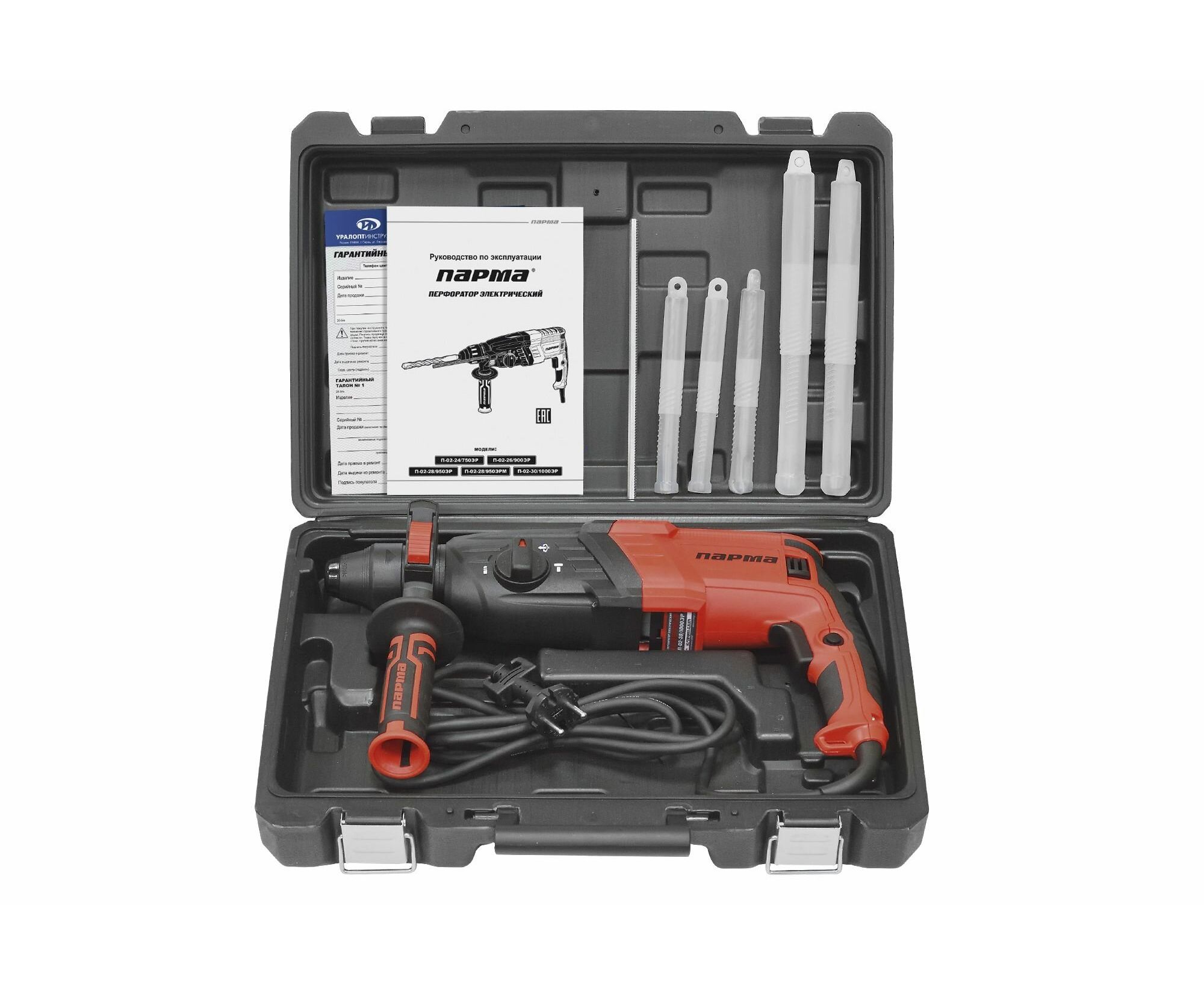 Перфоратор Парма П-02-30/1000ЭР 02.027.00009 – функциональная модель с тремя режимами работы: сверление, сверление с ударом, отбойный режим.