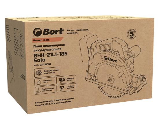 Пила циркулярная аккумуляторная Bort BHK-21LI-185 Solo (93418361) Без АКБ и ЗУ
