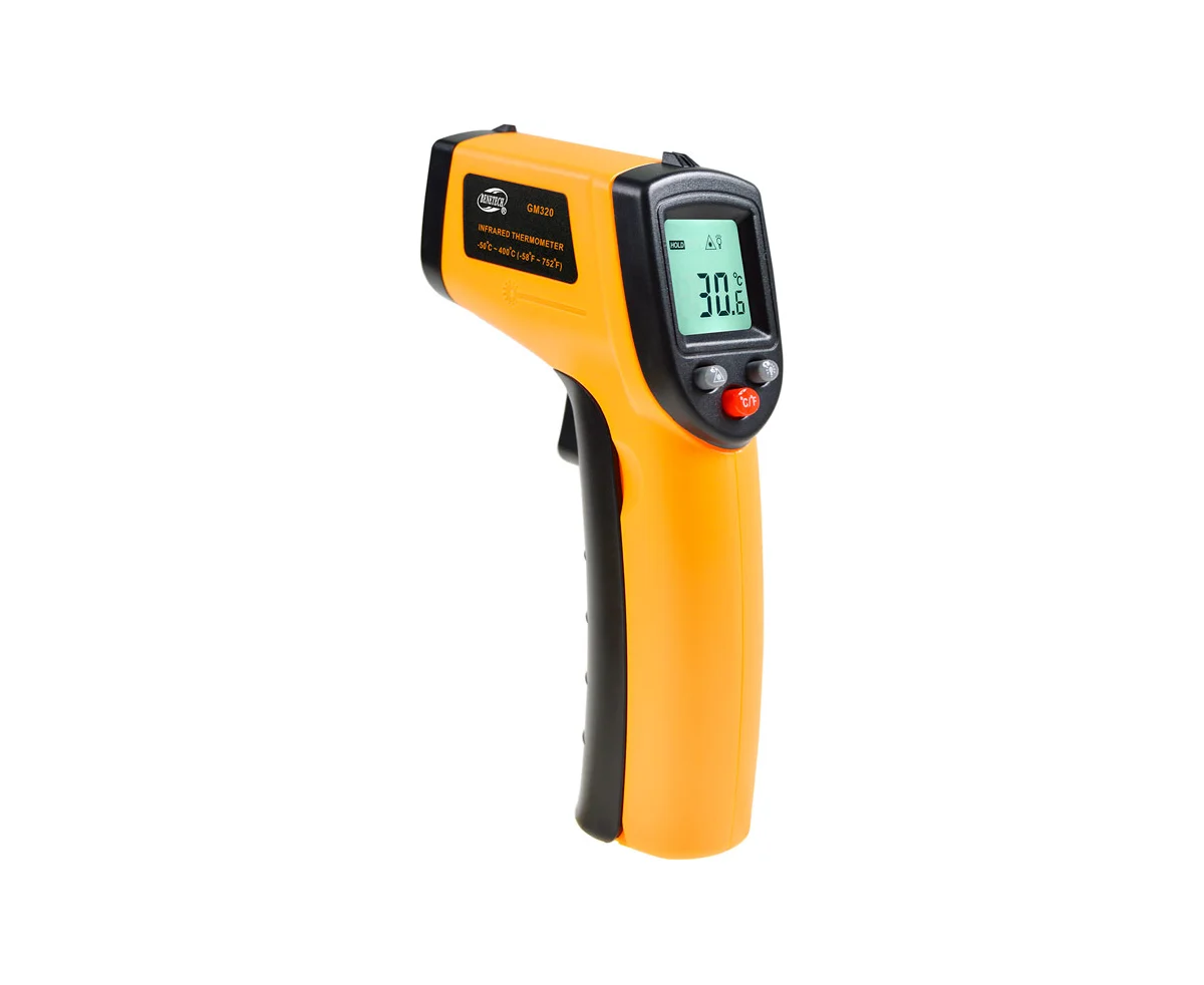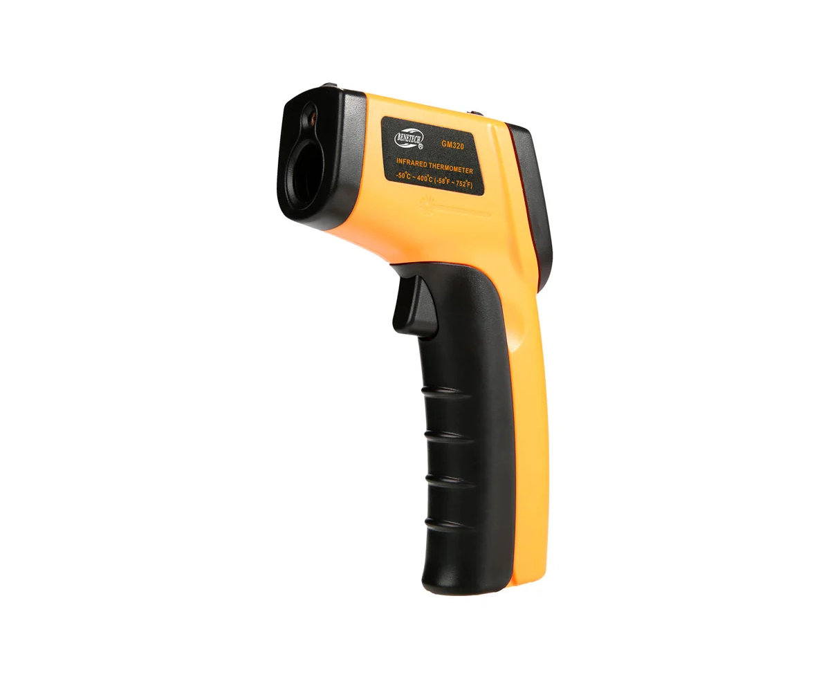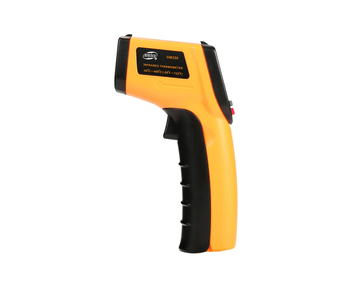 Пирометр Benetech GM320 — это бесконтактный инфракрасный термометр, измеряющий температуры от -50°C до 380°C с точностью ±1.5°C. Быстрое время отклика 0.5 секунд и измерение на расстоянии до 1 метра делают его удобным и безопасным. Компактный дизайн и автоматическое выключение обеспечивают простоту использования и экономию батареи. Идеален для проверки нагревательных систем, двигателей и электрооборудования.