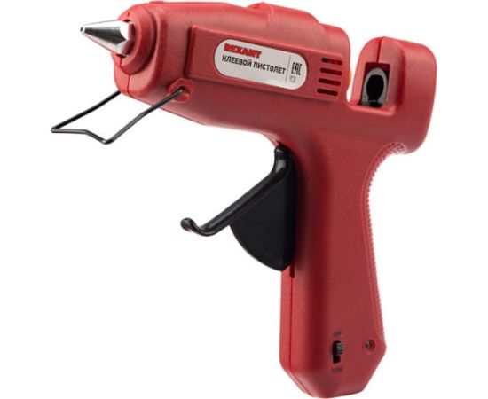 Пистолет клеевой REXANT (100 Вт, Ø11 мм) предназначен для прочной фиксации поверхностей с помощью расплавленной клеевой массы.