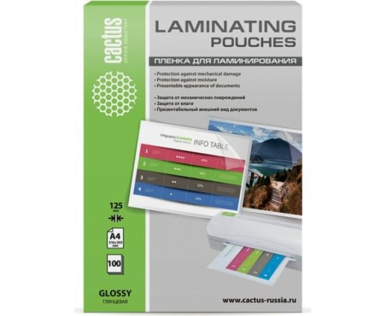 Пленка для ламинирования Cactus CS-LPGA4125100 216x303мм 125мкм A4 100шт глянцевая