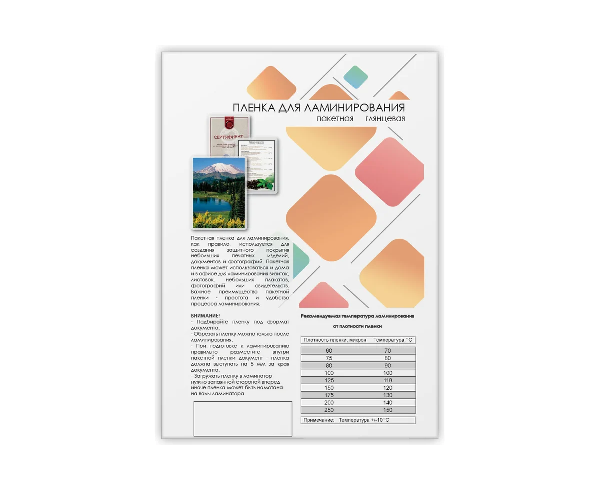 Пленка для ламинирования ГЕЛЕОС LPA4-80 80мкм 216х303 мм 100шт глянцевая A4