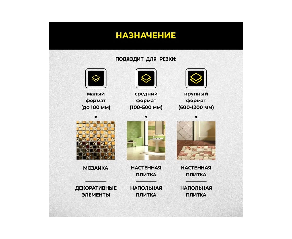 -Максимальный размер плитки: 1200 мм