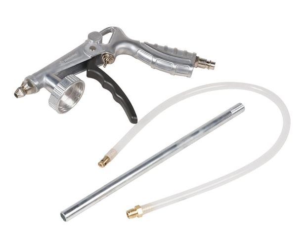 Пистолет изготовлен из металла. Имеет стандартное присоединение под евробаллон и дополнительное гибкое сопло для нанесения составов в скрытых полостях и труднодоступных местах.