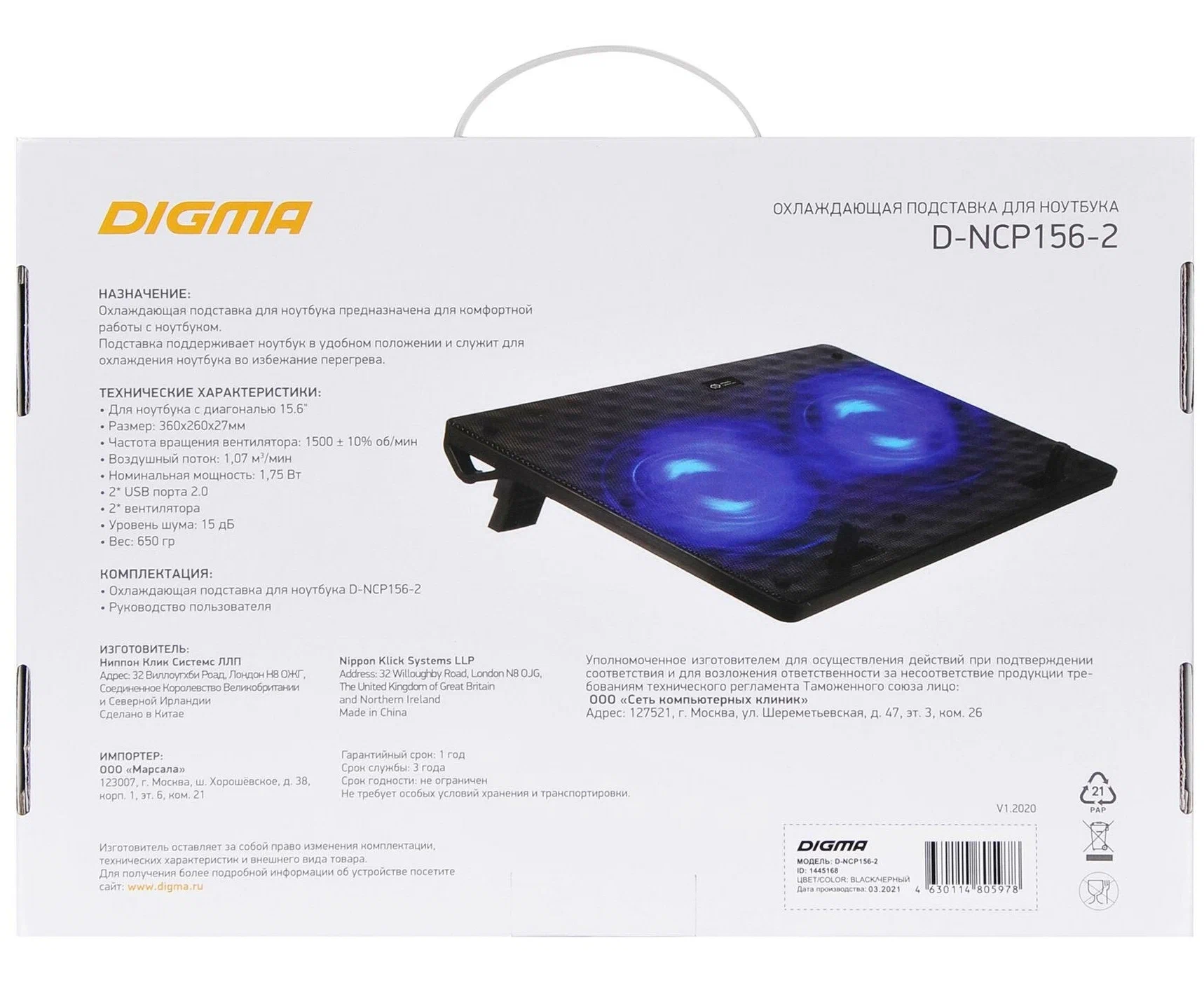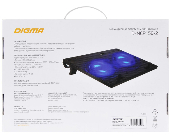 Подставка для ноутбука Digma D-NCP156-2 15.6"360x260x27мм черный