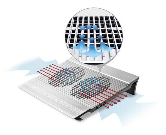 Подставка для охлаждения ноутбука DEEPCOOL N8 Silver (до 17", вентилятор 2x140мм, алюминий, 2xUSB) Retail box