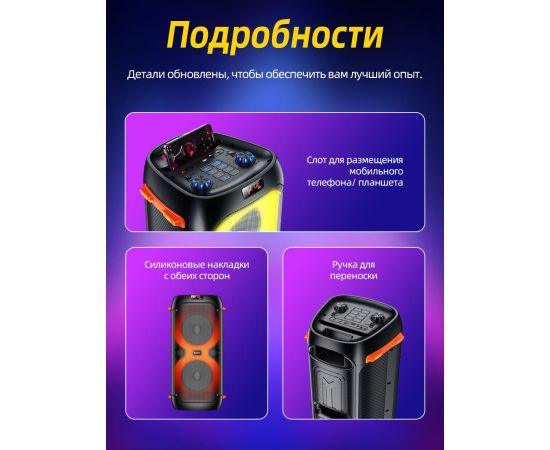Поддерживает BT, TF-карту, USB-накопитель, AUX, FM и другие режимы.