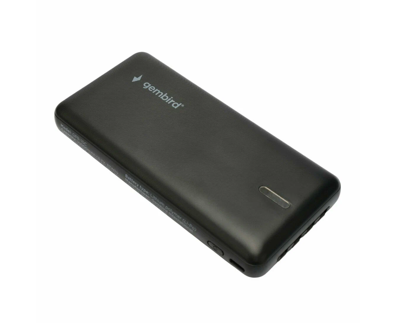 Этот компактный внешний аккумулятор Gembird GPB-10C объёмом 10000 мАч основан на литий-полимерной технологии, что гарантирует стабильность и безопасность при эксплуатации. Чёрный пластиковый корпус с размерами 140x68x20 мм сочетает в себе прочность и мобильность. Особенностью модели стали четыре встроенных кабеля — Lightning, micro USB, USB 2.0 и USB Type-C, устраняющих нужду в дополнительных аксессуарах.