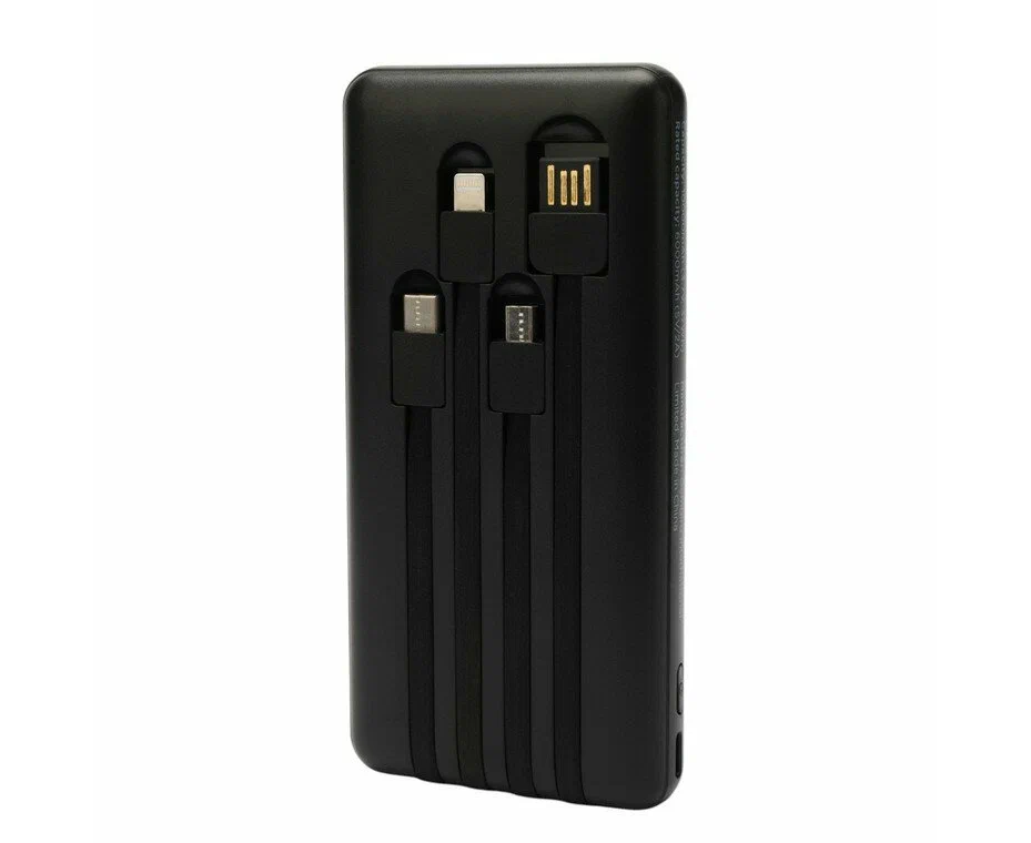 Портативный аккумулятор Gembird GPB-10C 10000мАч, 2A, 4 встр.кабеля, черный