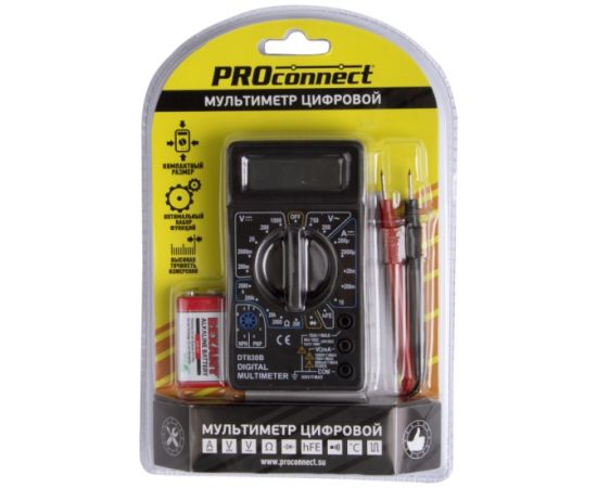- Размер: 70х126х26 мм Тип батареи: Proconnect 9 В «Крона» (в комплекте)
