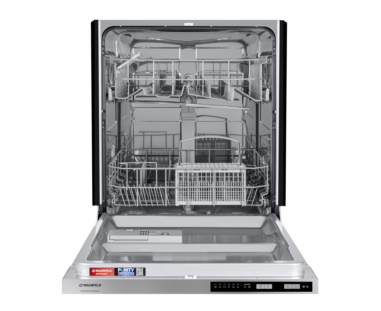 MAUNFELD MLP60020 Light Beam — полноразмерная встраиваемая посудомоечная машина, которая избавит вас от необходимости мыть посуду вручную . Вместимость — до 12 комплектов посуды. За раз можно помыть сразу много посуды — это оценят большие семьи и те, кто любит готовить или часто принимает гостей. В машине максимально эффективно организовано внутреннее пространство. Есть удобная корзина для столовых приборов и мелкой утвари. Верхняя корзина — с изменяемой высотой установки, чтобы можно было мыть посуду разного размера и объёмов. В верхней корзине есть складные держатели для бокалов — дополнительное важное удобство. Предусмотрены несколько программ мытья для посуды разной степени загрязнения. Посудомоечная машина MAUNFELD MLP60020 Light Beam— помоет посуду без вашего участия, освобождая время для более приятных занятий.