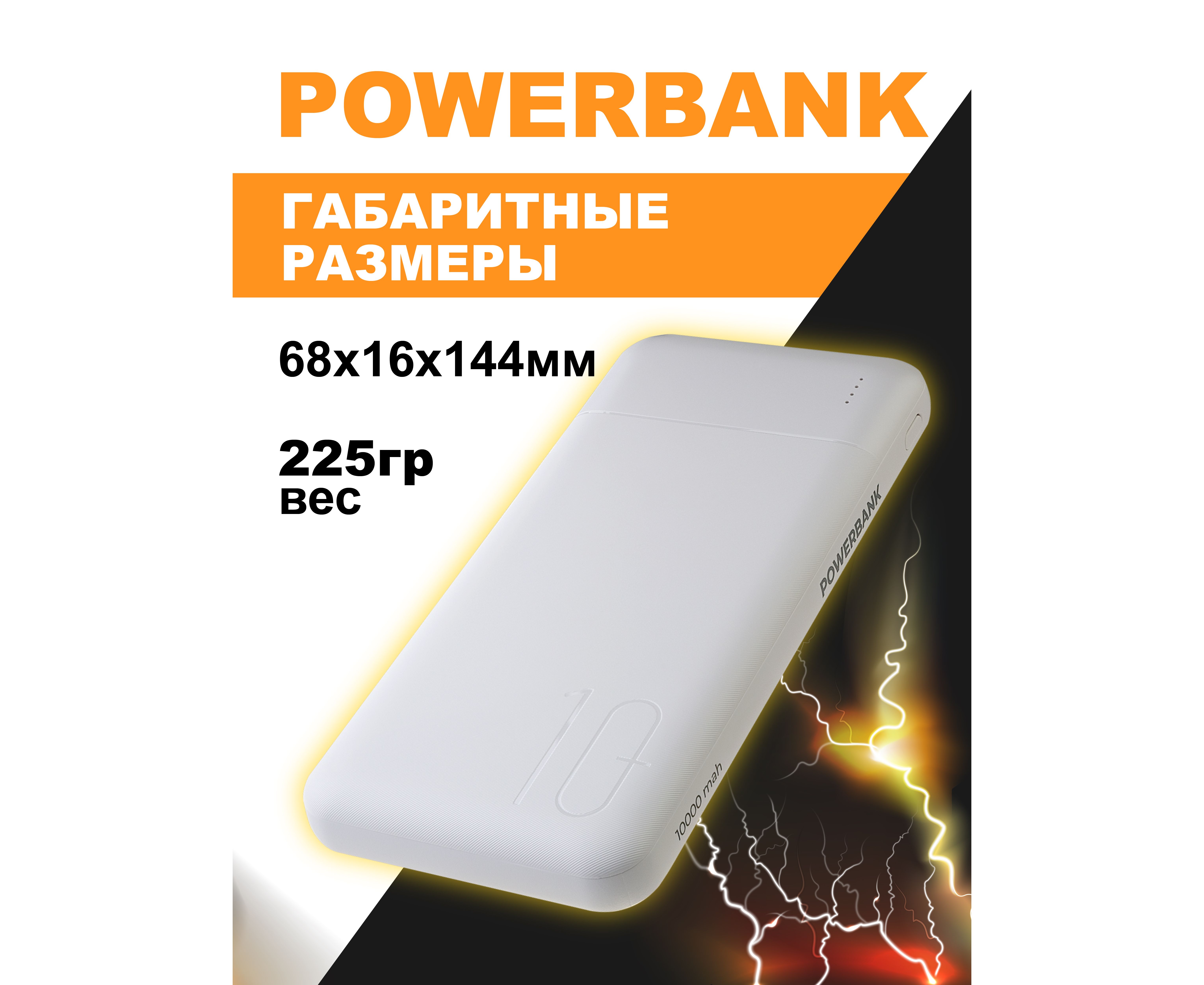 Повербанк Perfeo 10000 mah + In Micro usb+Type-C /Out USB 1 А, 2.1A / Белый