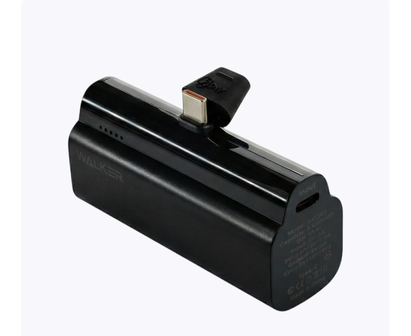 Power Bank Walker WB-960 Mini, 20Вт, 5000mAh, Li-Pol, 3A, Type-C, PD, подставка, черный