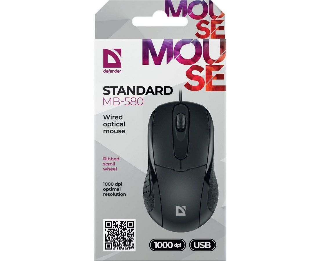 Мышь проводная оптическая DEFENDER Standard MB-580 (52580), черный