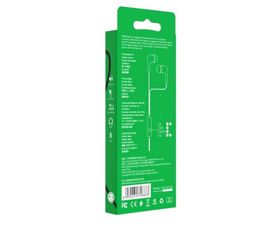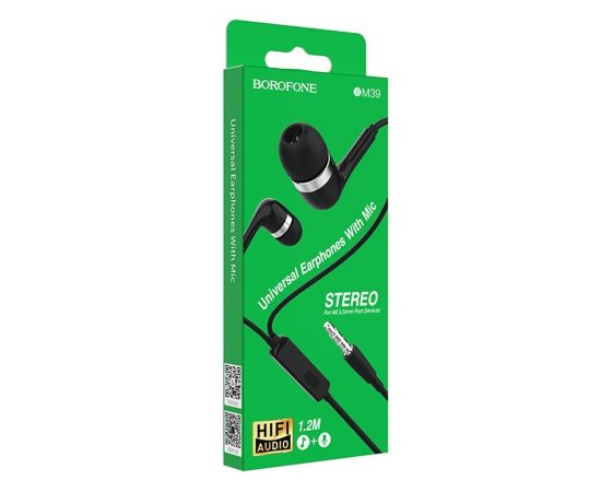 Проводные наушники с микрофоном внутриканальные Borofone BM39 Refined chant Jack 3,5 (black)(126962)