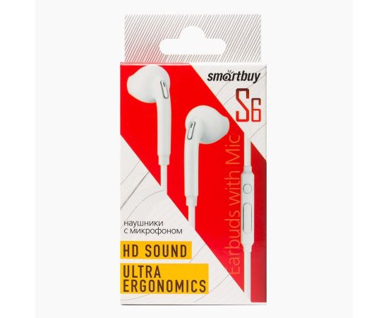 Проводные наушники внутриканальные Smart Buy SBH-202K S6 Jack 3,5 (white) (131991)