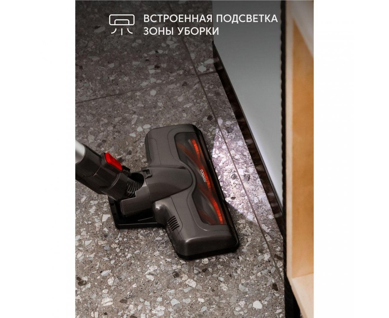 Для дополнительного освещения убираемой поверхности предусмотрена яркая подсветка.