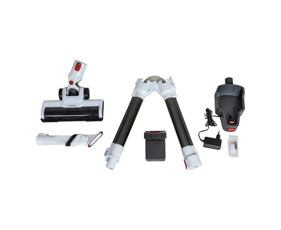 Комплектация пылесос, адаптер питания, турбо-щетка c LED-подсветкой, узкая насадка-щетка для уборки труднодоступных мест и очистки мягкой мебели, держатель насадки, настенное крепление, гарантийный талон, инструкция на русском языке