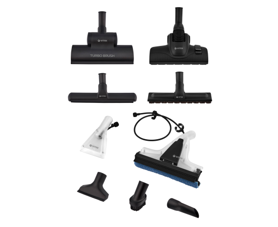 насадка для мойки окон, насадка для мягкой мебели, насадка для сбора жидкости, насадка для твердых покрытий мебели, турбощетка, щелевая насадка, гарантийный талон, гибкий шланг с рукояткой и трубкой для подачи жидкости, инструкция, металлическая телескопическая труба, насадка для влажной уборки мебели с короткой трубкой подачи жидкости, насадка для влажной уборки мягкой мебели с короткой трубкой подачи жидкости, насадка для влажной уборки пола с длинной трубкой для подачи жидкости, насадка для влажной уборки твёрдых полов и окон, насадка – швабра со сменной тряпочкой из микрофибры, резиновый сгон для воды, сепаратор (закрытый) для очистки с водной фильтрацией, сепаратор (открытый) для влажной уборки, щетка для пыли