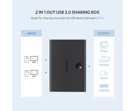 Сплиттер UGREEN 30345 (30345) USB 2.0 Sharing S Witch 2x1. Цвет: черный