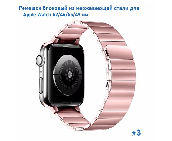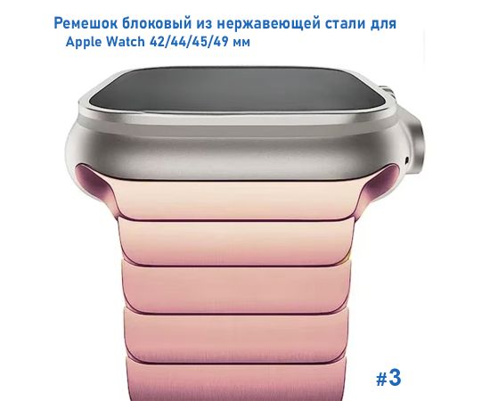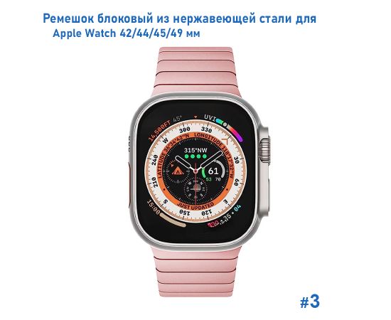 Ремешок блоковый из нержавеющей стали Great Case Steel Loop Ultra для Apple Watch 42/44/45/49 мм, 210мм, на магните, розовый (3)