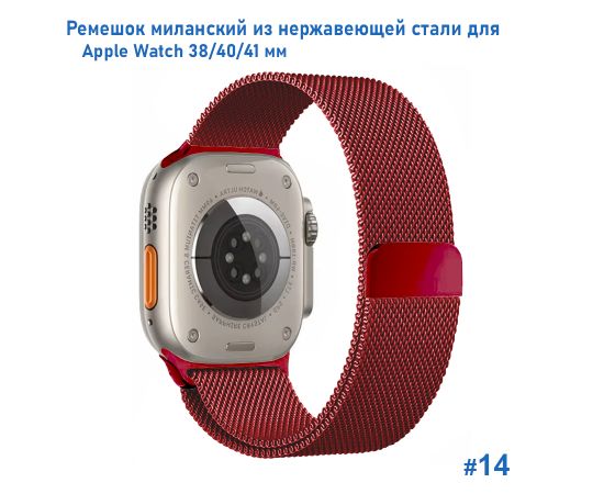 Ремешок миланcкий из нержавеющей стали Great Case Milanese Loop для Apple Watch 38/40/41 мм, 235мм, на магните, красный (14)