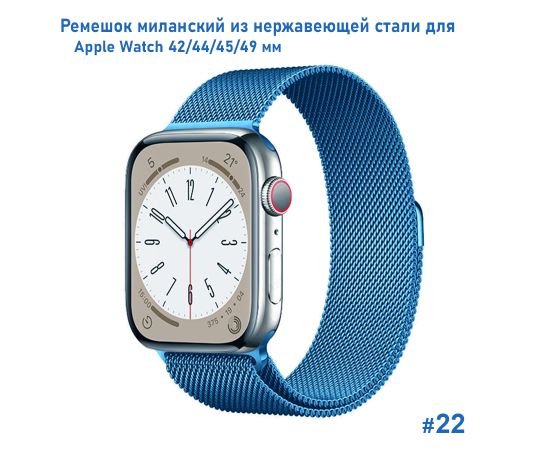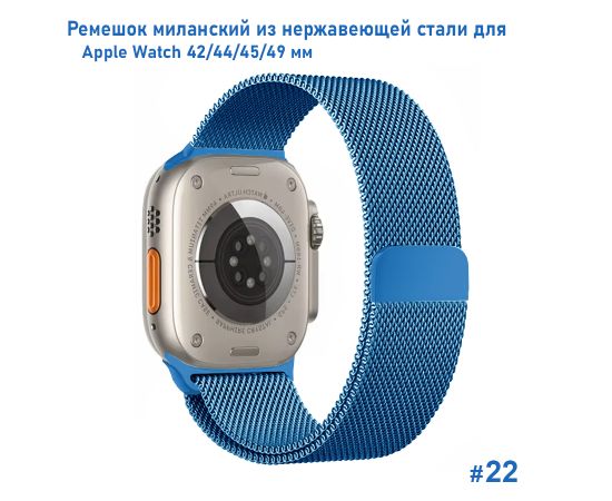 Ремешок миланcкий из нержавеющей стали Great Case Milanese Loop для Apple Watch 42/44/45/49 мм, 255мм, на магните, лазурный (22)