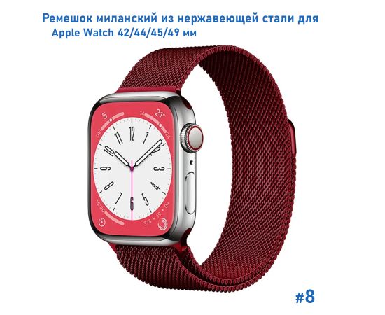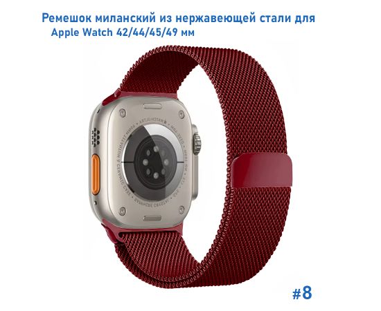 Ремешок миланcкий из нержавеющей стали Great Case Milanese Loop для Apple Watch 42/44/45/49 мм, 255мм, на магните, бордовый (8)
