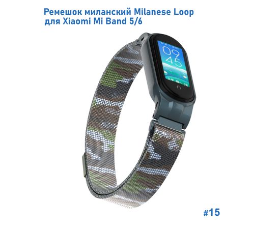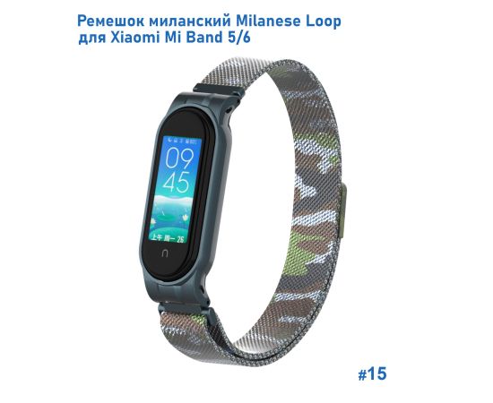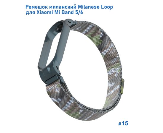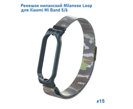 Ремешок миланcкий из нержавеющей стали Great Case Milanese Loop для Xiaomi Mi Band 5/6, 260мм, на магните, камуфляж+зеленый (15)