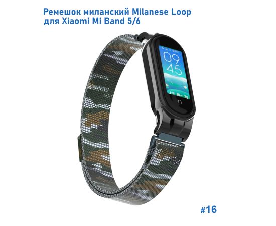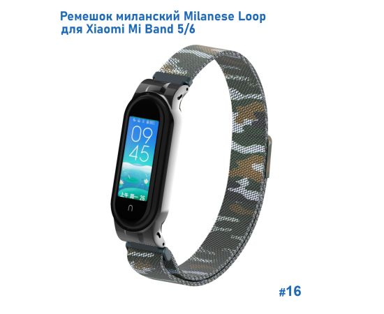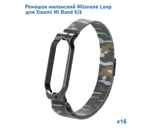 Ремешок миланcкий из нержавеющей стали Great Case Milanese Loop для Xiaomi Mi Band 5/6, 260мм, на магните, камуфляж+армейский (16)