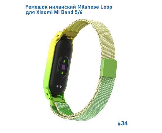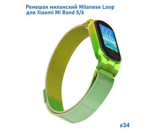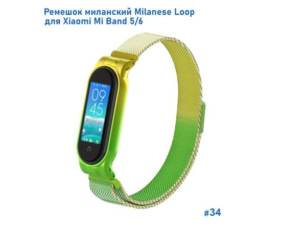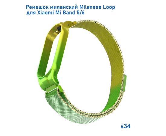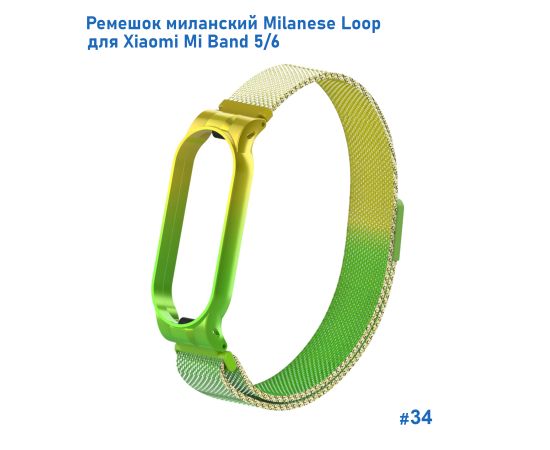 Ремешок миланcкий из нержавеющей стали Great Case Milanese Loop для Xiaomi Mi Band 5/6, 260мм, на магните, желтый+зленый (34)