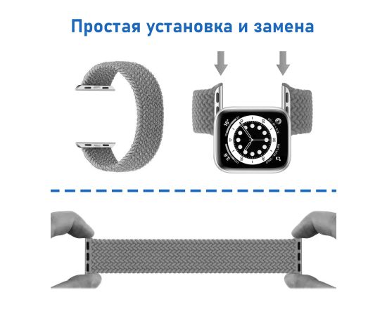 Дышащий плетённый ремешок подходит для спорта, умеренной мягкости, легкой сборки. Идеальная подгонка, без зазора! Материал продукта: переработанная пряжа, силиконовый шелк, фурнитура, нейлон. Размер удобно регулируется при помощи застёжки‑липучки. Двухслойное плетение из нейлона образует на прилегающей к коже стороне множество петелек. Они формируют смягчающую поверхность и при этом быстро отводят влагу. А микропетли на обратной стороне сделаны более прочными для надёжного сцепления с липучкой.