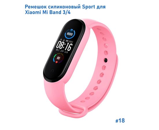 Ремешок силиконовый Great Case Sport для Xiaomi Mi Band 3/4, 250мм, на кнопке, светло-розовый (18)
