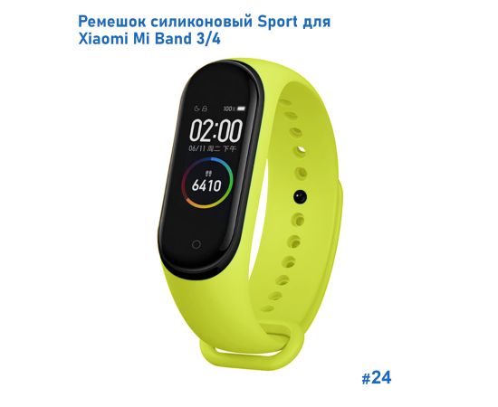 Ремешок силиконовый Great Case Sport для Xiaomi Mi Band 3/4, 250мм, на кнопке, лайм (24)