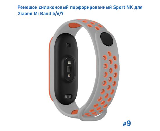 Ремешок силиконовый перфорированный Great Case Sport NK для Xiaomi Mi Band 5/6/7, 250мм, на кнопке, серый+оранжевый (9)