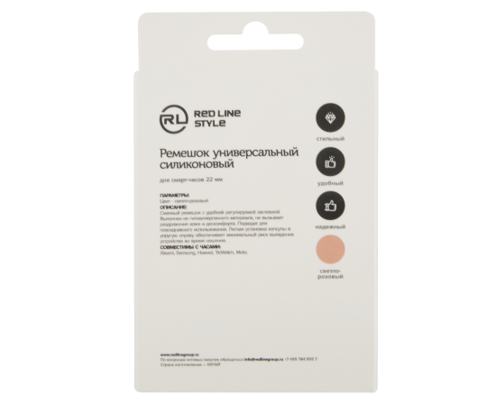 Ремешок для часов универсальный силиконовый, 22 mm, светло-розовый