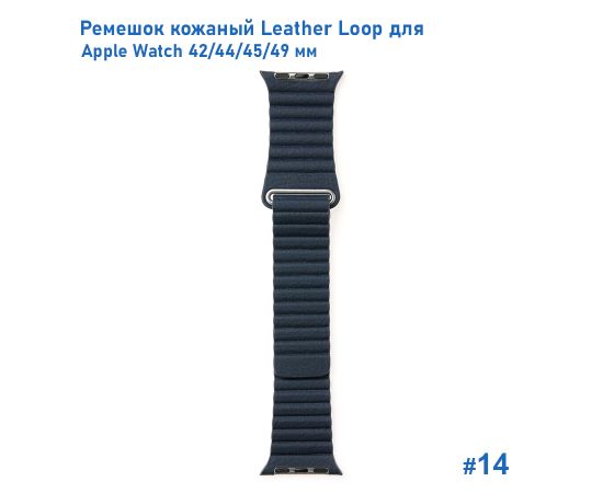 Ремешок кожаный Great Case Leather Loop для Apple Watch 42/44/45/49 мм, 225мм, на магните, темно-синий (14)